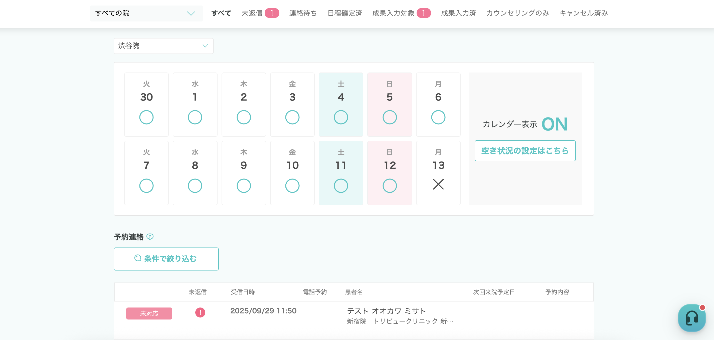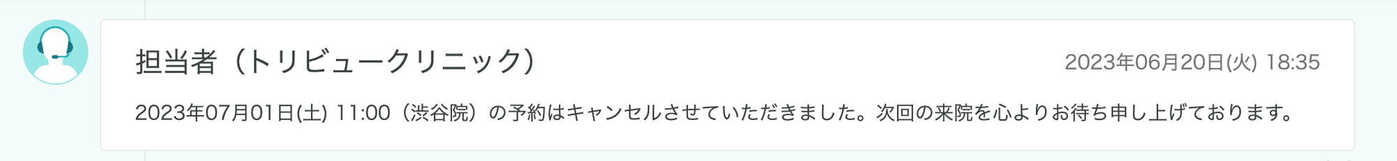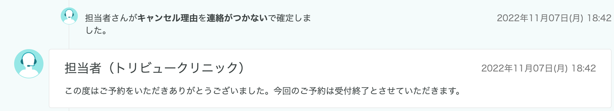 今回の予約内容では来院しないと連絡があった