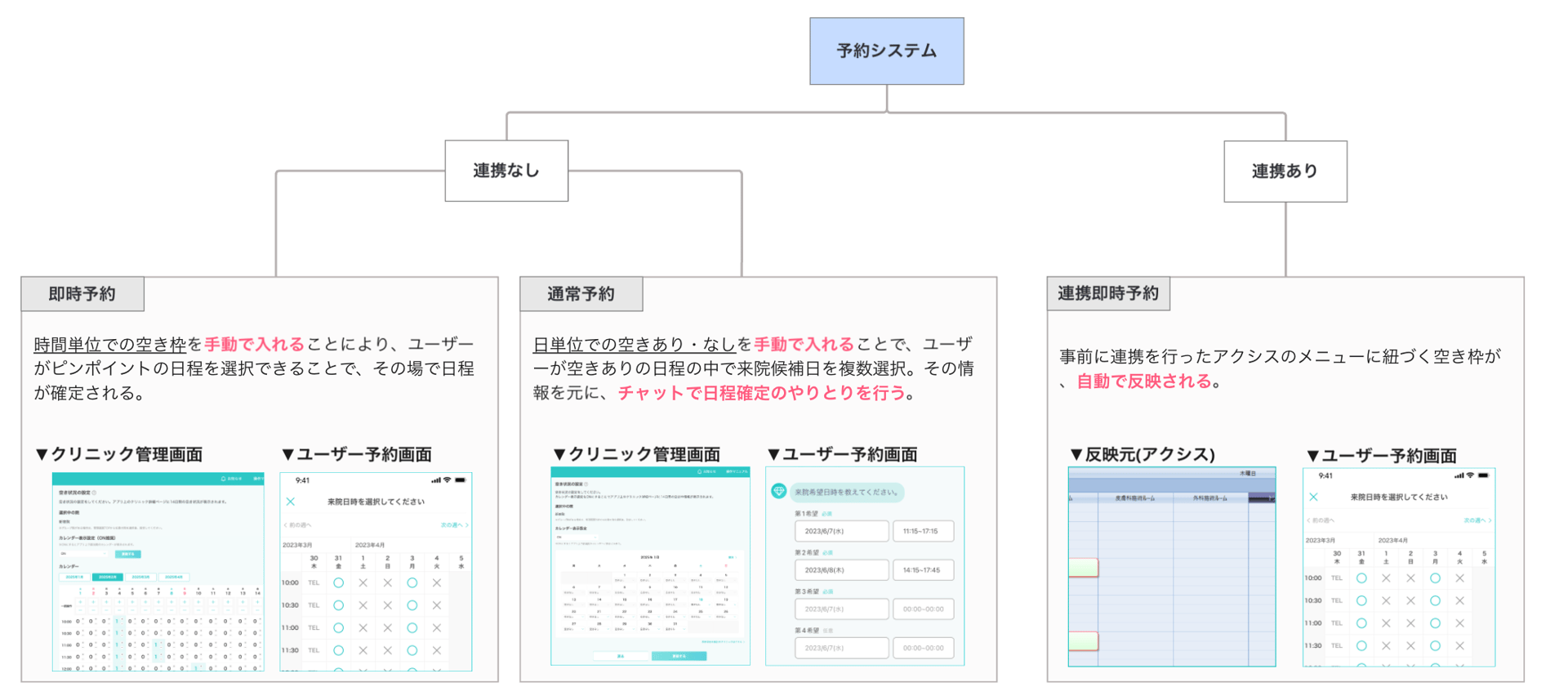 アクシス予約連携機能をご利用の場合、予約の流れは主に3パターンに分類されます。