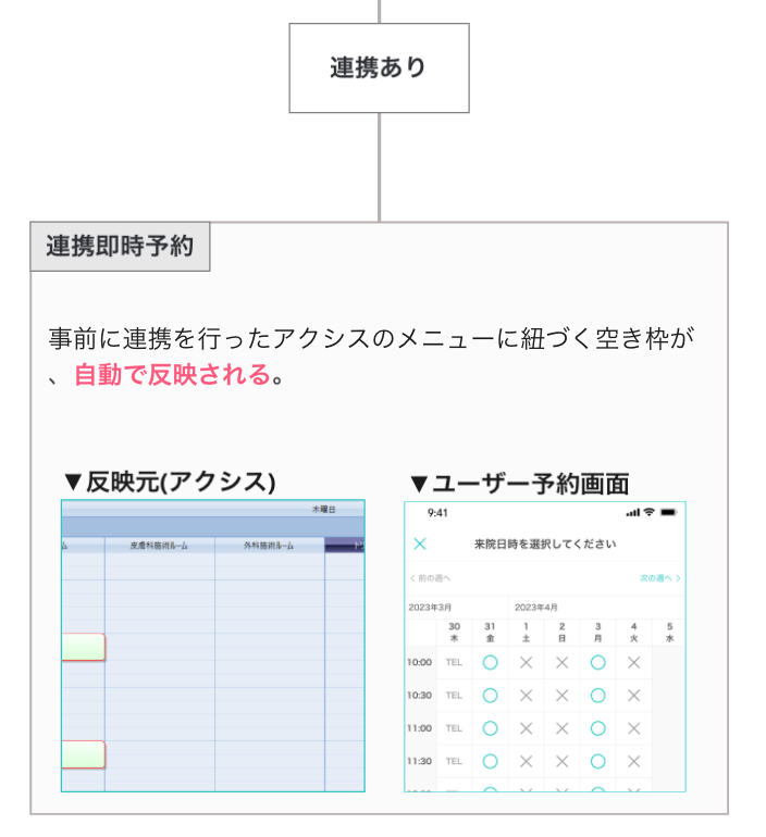 連携即時予約の場合は、アクシス側にリアルタイムで予約情報が反映されます。