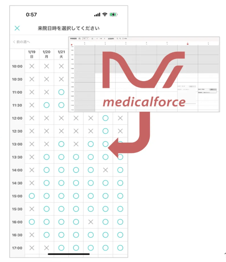 メディカルフォースとの連携は、予約の初動時のみとなります。