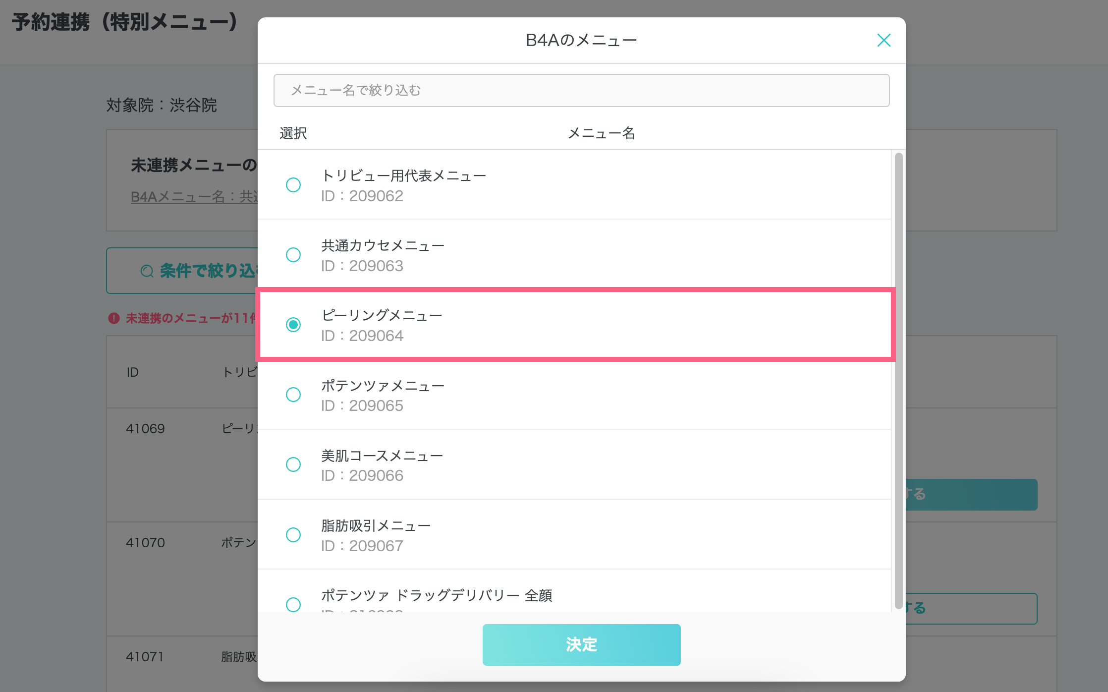 紐付けるB4Aメニュー:ピーリング&ポテンツァ