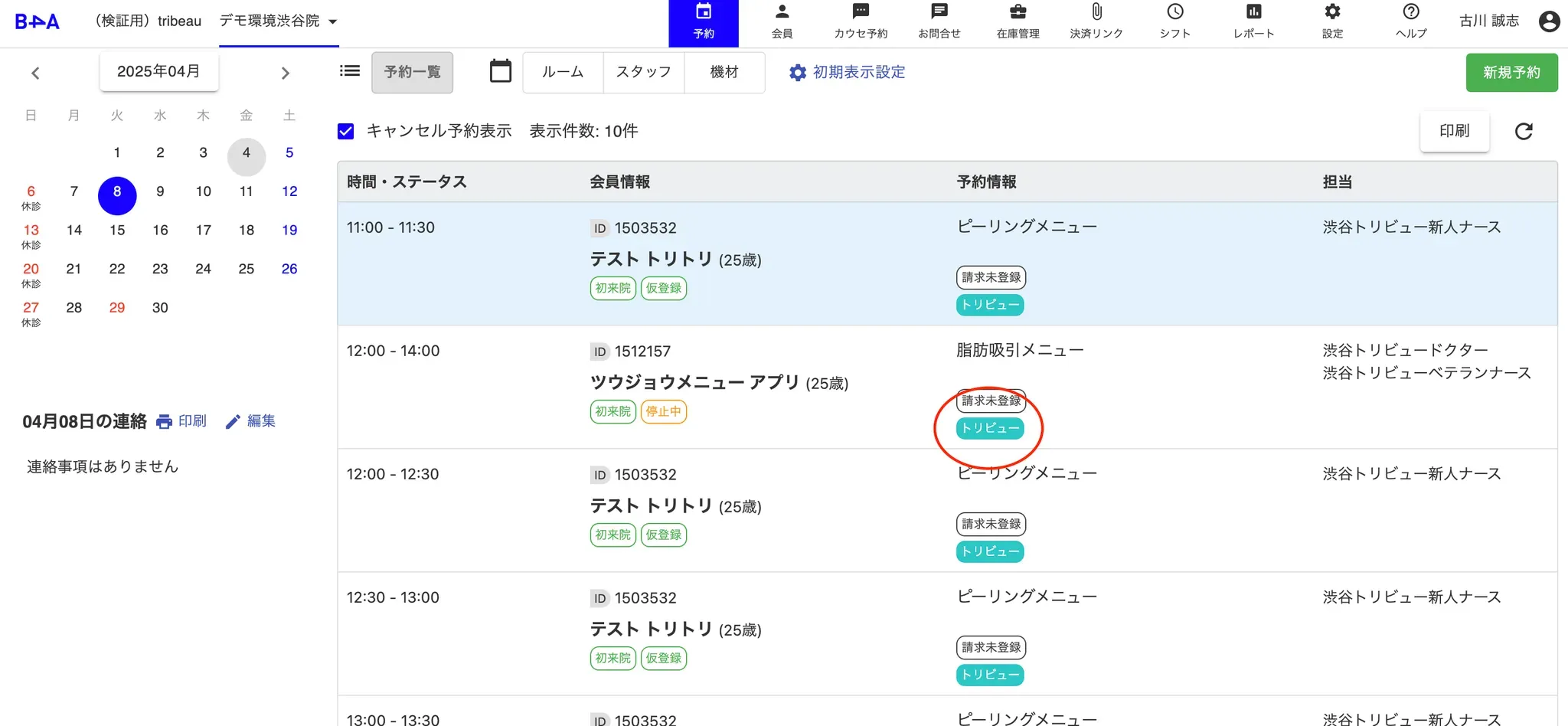 予約をキャンセルする場合は、従来通りトリビュー管理画面上にて手動でキャンセル処理をお願いします。