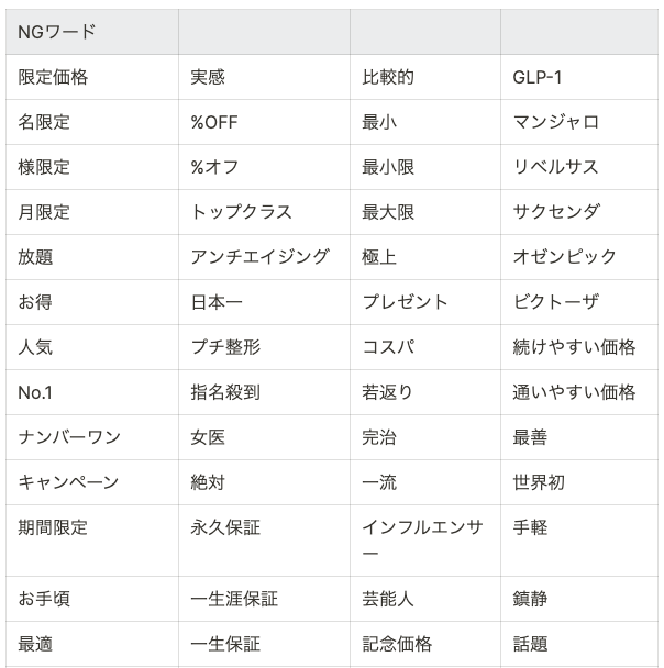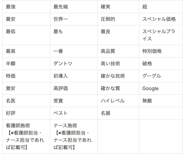 以下ワードは使用根拠の確認に5営業日程度をいただきますので、予めご了承ください