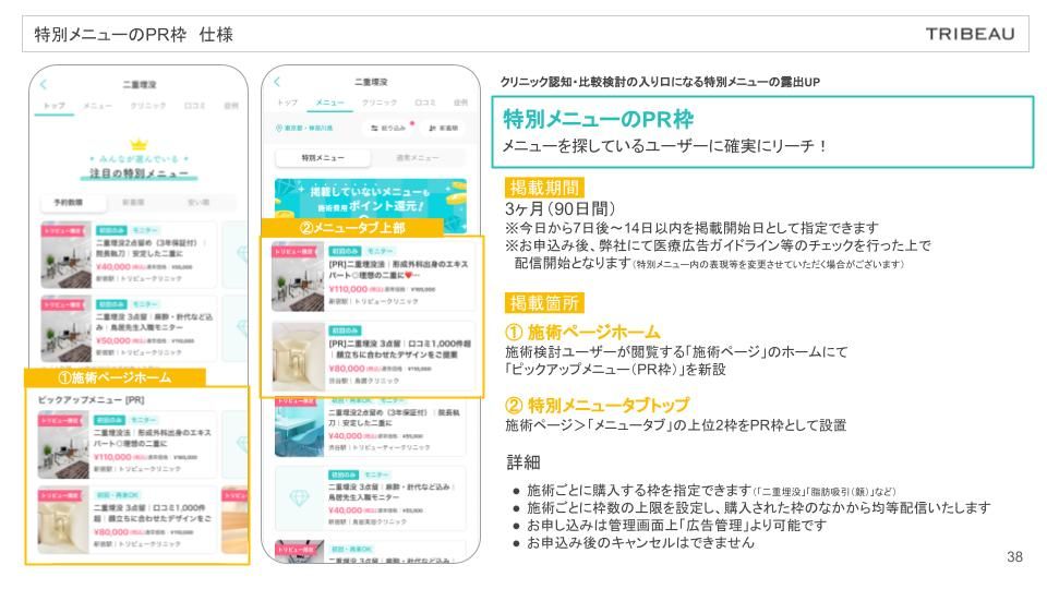 特別メニュータブ内の上部2枠をPR枠として設定いたします
