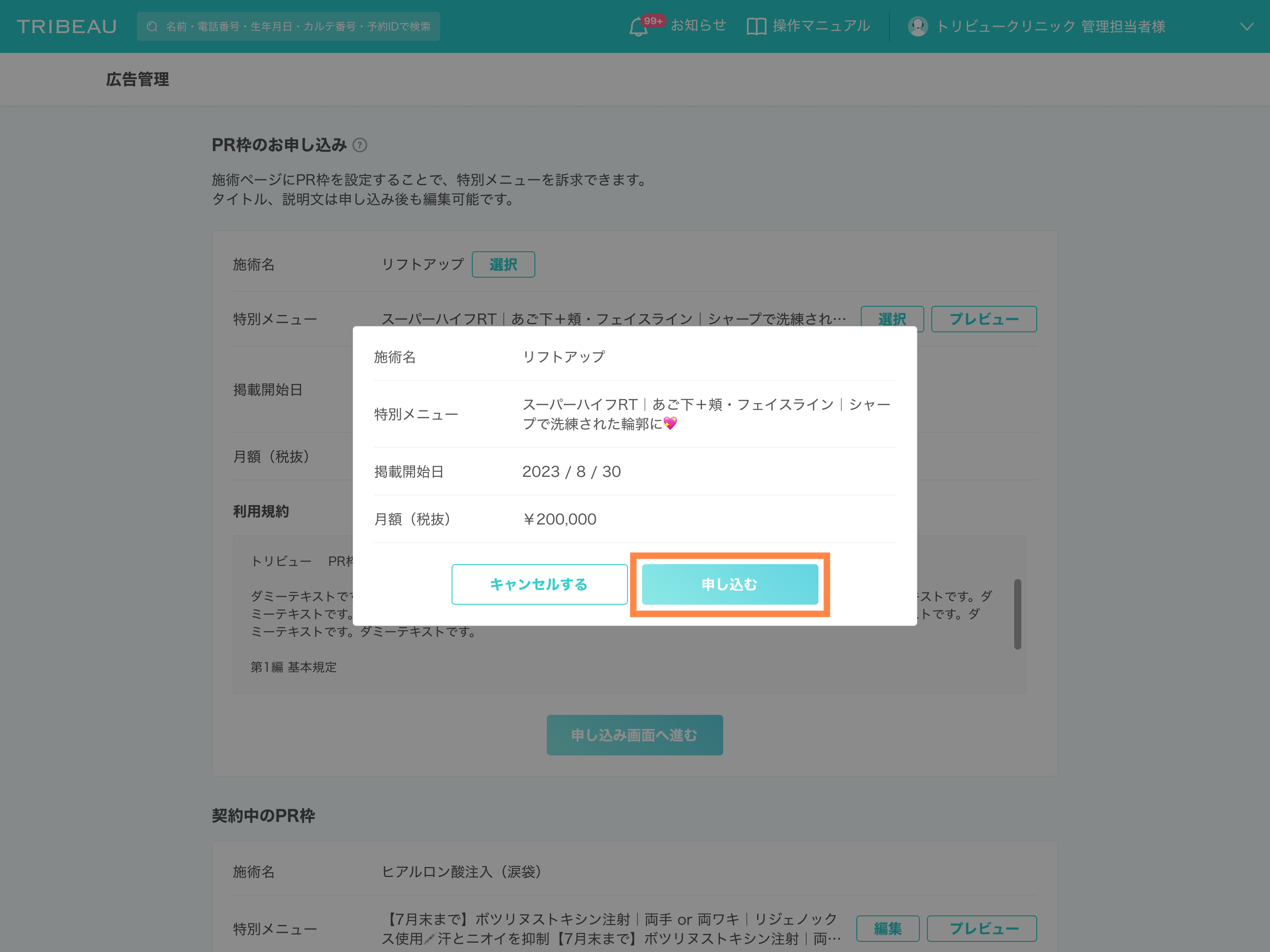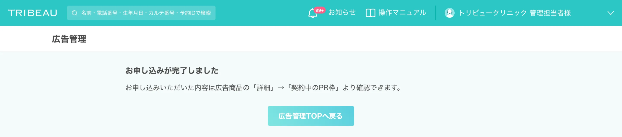 お申し込みは管理画面上「広告管理」より可能です
