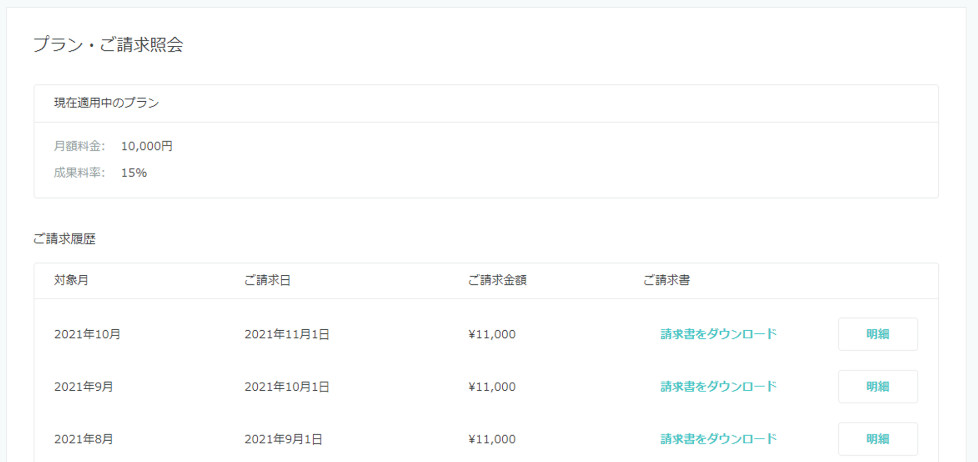 管理画面上からも請求内容の確認が可能です。