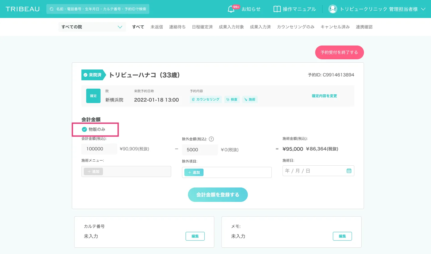 「除外項目」とは、クリニック様にご入力いただいた売上のうち、弊社の手数料が発生しないものを指します。(手数料が発生するもの=「成果対象」)