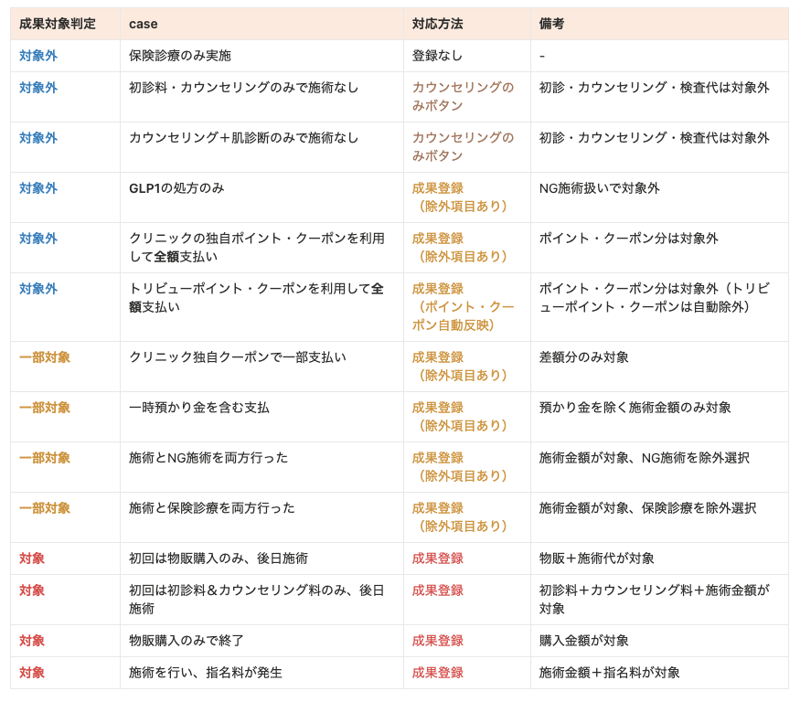 トリビュー経由の施術・購入は以下5点を除きすべて成果対象に