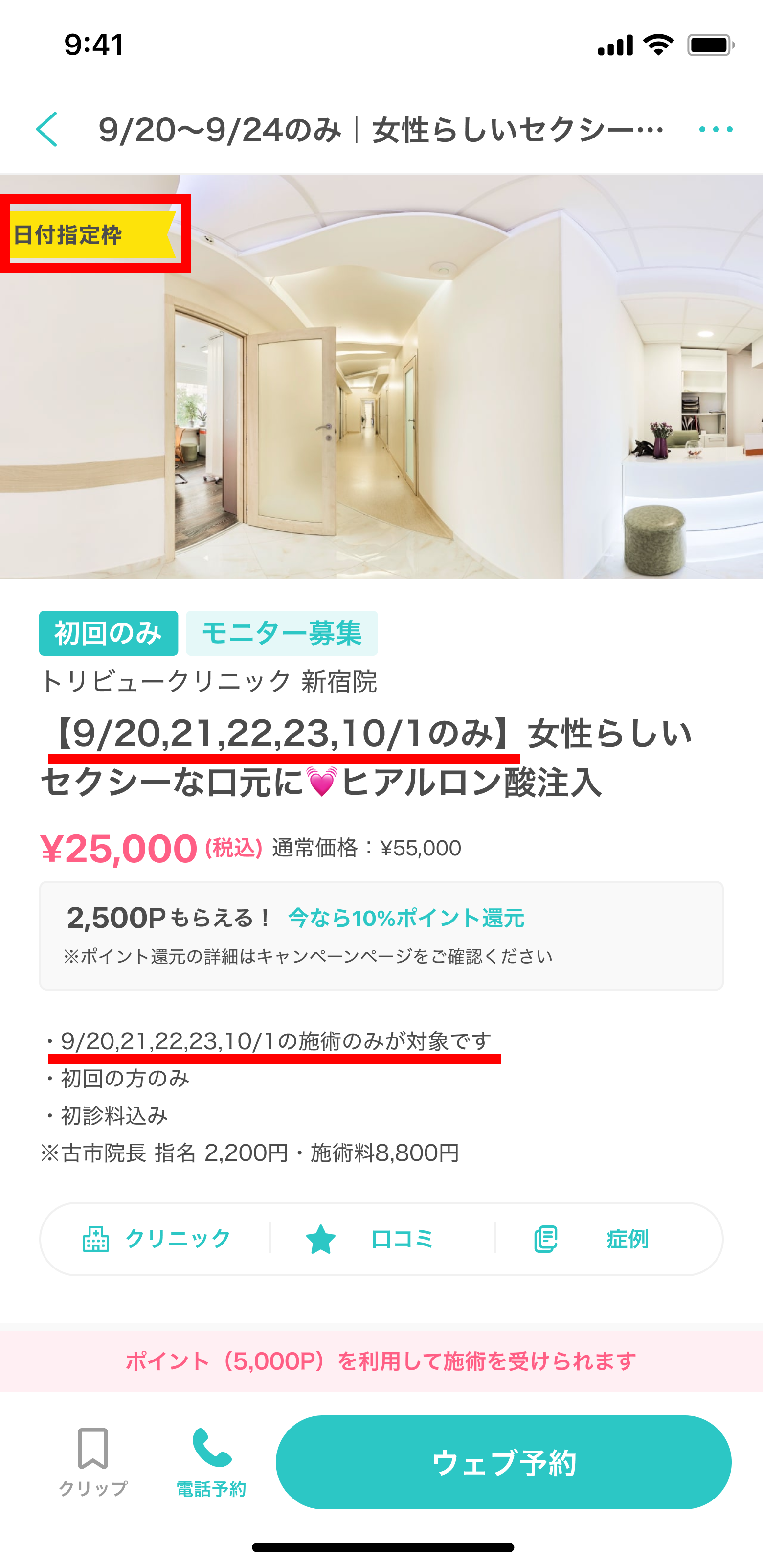 ・〜(施術可能日)の施術のみが対象ですと表示されます